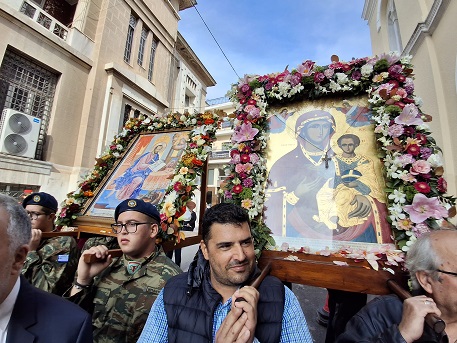 Ακολούθως πραγματοποιήθηκε Πάνδημη Ιερά Λιτανεία με τη συμμετοχή κληρικών, εκπροσώπων των Σωμάτων Ασφαλείας, των τοπικών αρχόντων και του λαού, από τον Ιερό Ναό του Αγίου Αποστόλου και Ευαγγελιστού Λουκά, στον Ιερό Μητροπολιτικό Ναό Ευαγγελισμού της Θεοτόκου Λαμίας.