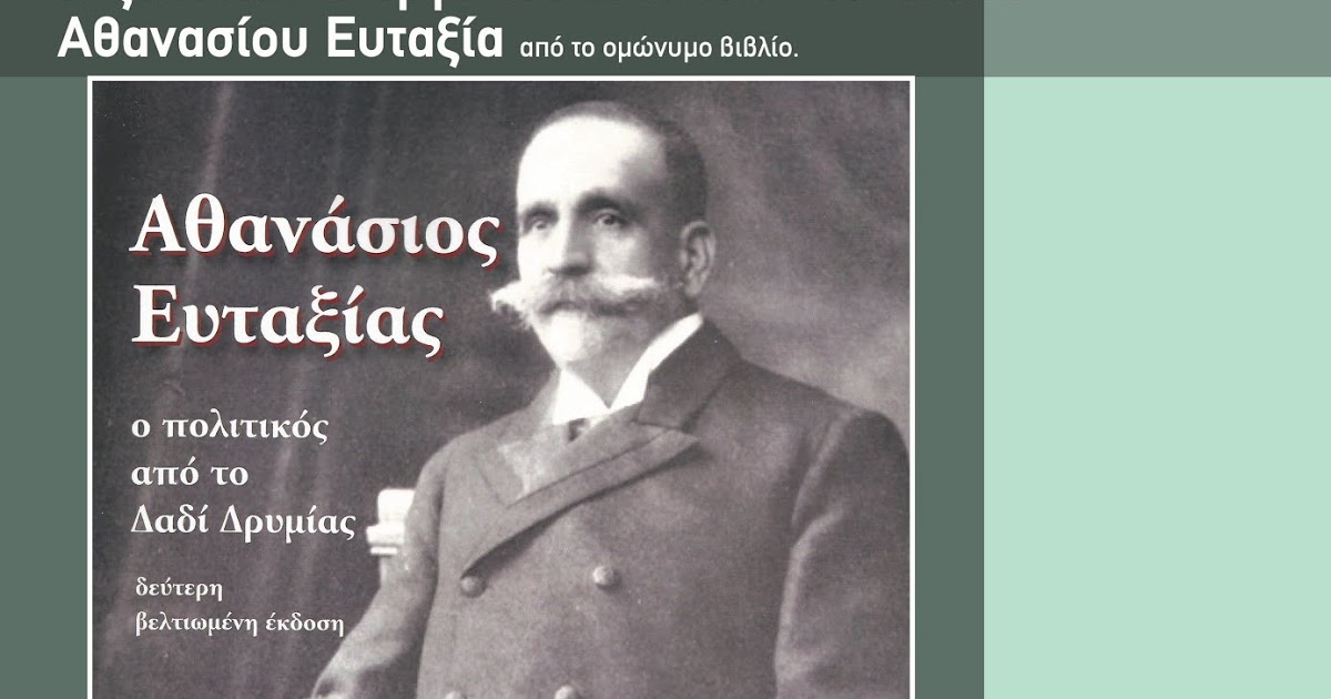 Την Κυριακή, 12 Μαΐου 2019, στις 11:30 π.μ. θα πραγματοποιηθεί η εκδήλωση που είναι αφιερωμένη στην παρουσίαση της ζωής και του έργου του Δαδιώτη πολιτικού, Αθανασίου Ευταξία μέσα από το ομώνυμο βιβλίο των συγγραφέων Δημητρίου Ιωαν. Βασιλείου και Ευγενίας Ευστ. Πανουργιά την οποία διοργανώνει ο Δήμος Αμφίκλειας - Ελάτειας, Δημοτική Κοινότητα Αμφίκλειας.