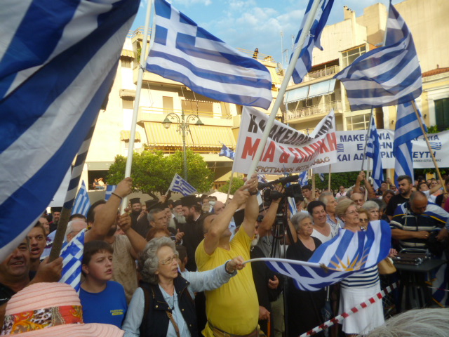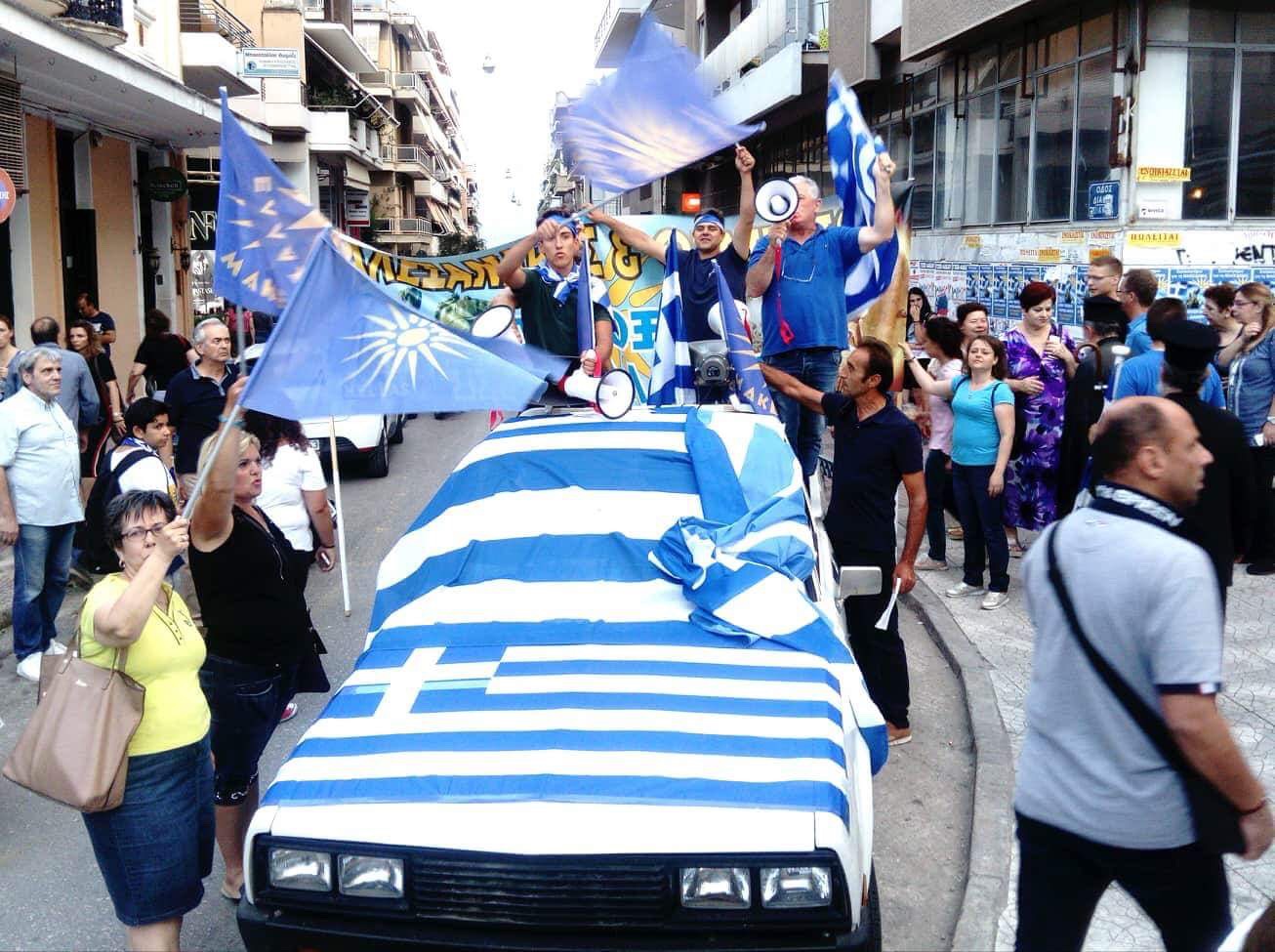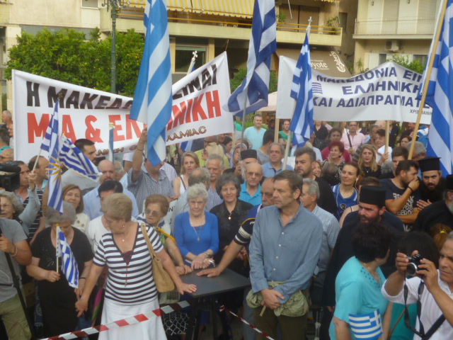 Ενάντια στο δόγμα τού αναπόφευκτου, ενάντια στην αδράνεια και στον ωχαδερφισμό, ενάντια στη συνέχιση των λαθών και στον ενδοτισμό, σηκώνουμε το ανάστημά μας τιμώντας τους ένδοξους προγόνους μας και την ιστορία του έθνους μας και υπό την σκέπη της γαλανόλευκης εμείς βροντοφωνάζουμε: η ΜΑΚΕΔΟΝΙΑ είναι ΕΛΛΗΝΙΚΗ!