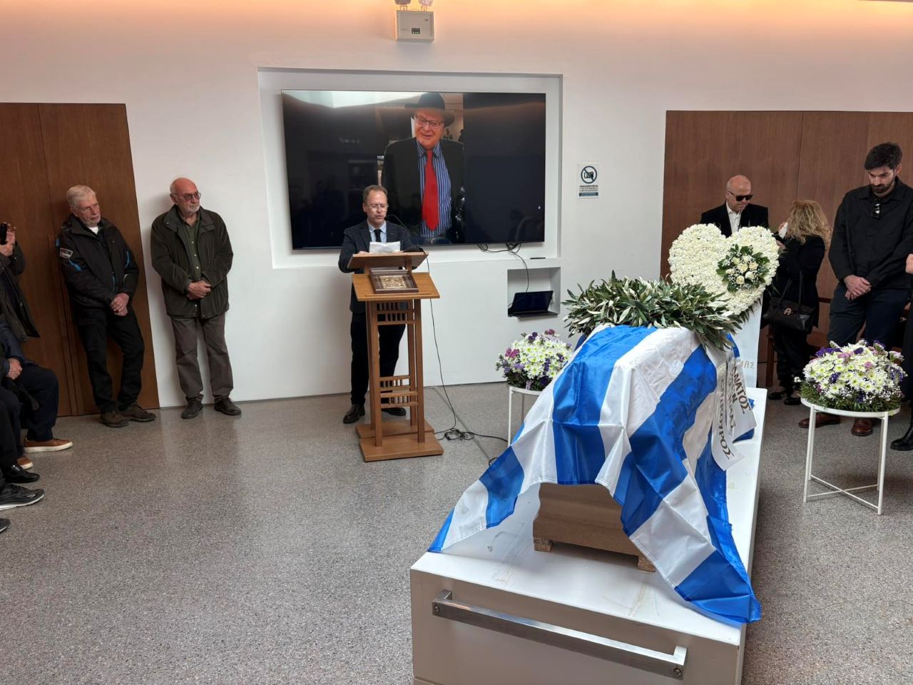 Η τελετή έλαβε χώρα στο ΚΑΝ (Κέντρο Αποτέφρωσης Νεκρών) της Ριτσώνας, το Σάββατο 28 Μαρτίου το μεσημέρι. Σε μία αίθουσα του ΚΑΝ ανάμεσα σε συγγενείς και φίλους ήταν ο μεγάλος Αναχωρητής Φοίβος Ιωσήφ για το αιώνιο ταξίδι στο υπερπέραν. Σκεπασμένος με την γαλανόλευκή και πολλά λουλούδια.