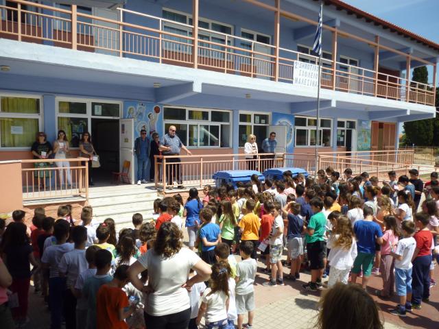 Ταυτόχρονα παραδόθηκαν στα σχολεία νέοι μπλε κάδοι ανακύκλωσης.