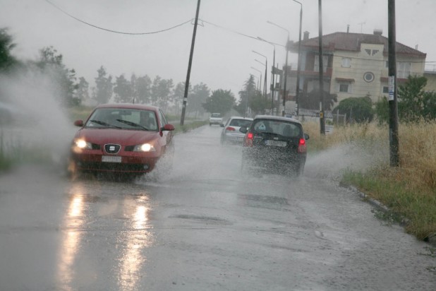 Καταρρακτώδης βροχή στη Λαμία --Πλημμύρισαν οι δρόμοι