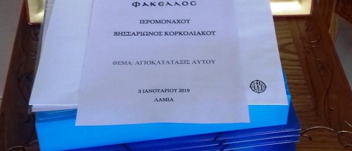 Πλήρη φάκελο κατέθεσε ο Σεβασμιώτατος Μητροπολίτης Φθιώτιδας κ. Νικόλαος στην Ιερά Σύνοδο της Εκκλησίας της Ελλάδος, περί της αγιοκατατάξεως του Ιερομονάχου Γέροντος Βησσαρίωνος του Αγαθωνίτου .