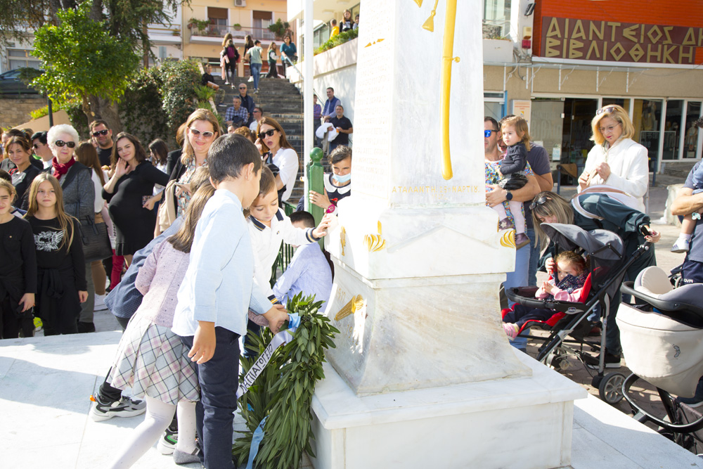 Στο πλαίσιο των εκδηλώσεων τιμής για τους αγωνιστές της εποποιίας του 1940, και με έντονο το αίσθημα της εθνικής περηφάνιας, πραγματοποιήθηκε σήμερα η κατάθεση στεφάνων στο ηρώο των πεσόντων στην πλατεία της Αταλάντης από τους μαθητές του Γενικού Λυκείου, του ΕΠΑ.Λ., του Γυμνασίου, του 1ου και του 2ου Δημοτικού Σχολείου, του 1ου, του 2ου και του 3ου Νηπιαγωγείου Αταλάντης του Δήμου Λοκρών. Αντιπροσωπείες μαθητών αναφώνησαν ποιήματα για την εθνική εορτή της 28ης Οκτωβρίου.