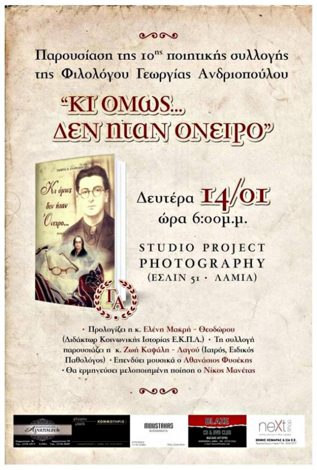 Τη νέα της ποιητική συλλογή με τίτλο “Κι όμως... δεν ήταν όνειρο” που στοιχειοθετήθηκε και τυπώθηκε από τις εκδόσεις “Λαμιακός