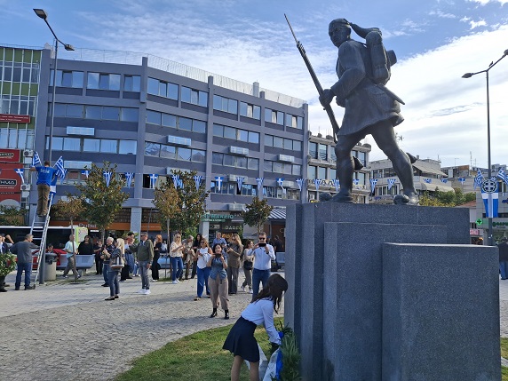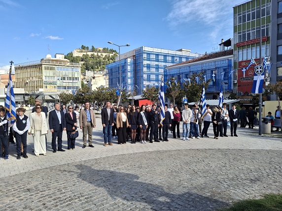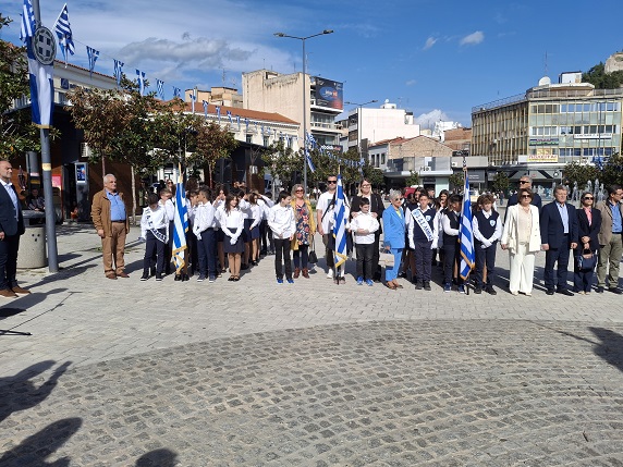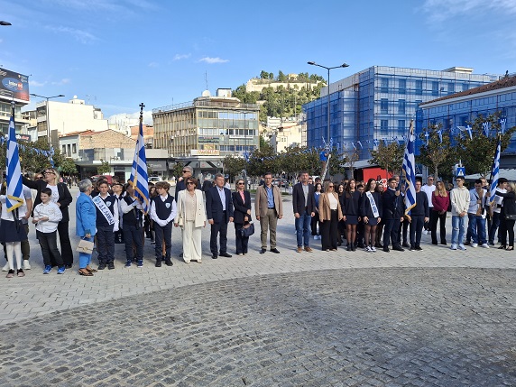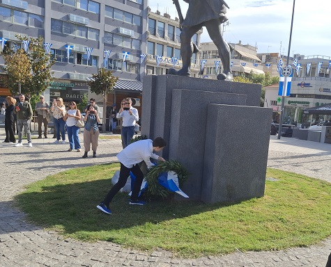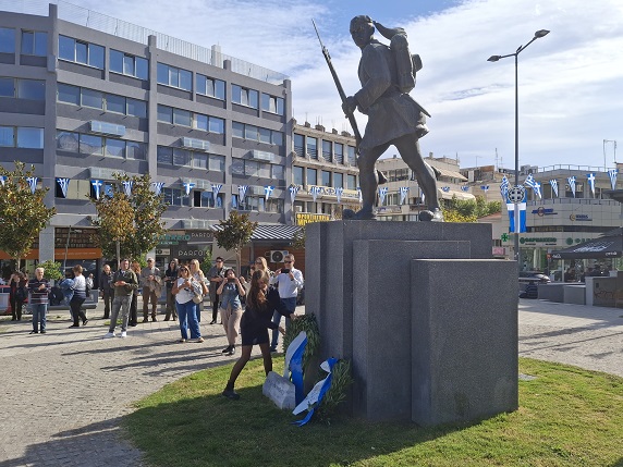 Μαθητές και μαθήτριες από το 1ο και 3ο Δημοτικό Σχολείο Λαμίας, από το Ειδικό Δημοτικό Σχολείο Λαμίας, από το 8ο Γυμνάσιο Λαμίας, από το Εργαστήριο Ειδικής Επαγγελματικής Εκπαίδευσης και Κατάρτισης Νομού Φθιώτιδας και αντιπρόσωποι από το Σώμα Προσκόπων και Ελληνίδων Οδηγών, βρέθηκαν στην κεντρική πλατεία της φθιωτικής πρωτεύουσας και απέτισαν τον δέοντα φόρο τιμής στον Ανδριάντα του Εύζωνα Πολεμιστή.