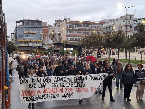 Παρά τις άσχημες καιρικές συνθήκες, με τις πιο χαμηλές θερμοκρασίες σε σχέση με τις μέρες που προηγήθηκαν και με τη ασθενή βροχόπτωση, εκατοντάδες πολίτες έδωσαν δυναμικό «παρών» στην κεντρική πλατεία της Λαμίας.