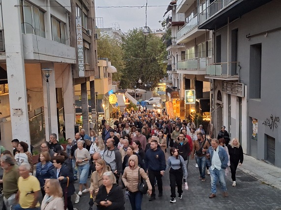 Μετά τη συγκέντρωση, οι παρευρισκόμενοι προχώρησαν σε πορεία τους κεντρικούς δρόμους της πόλης για να στείλουν το δικό τους μήνυμα συμπαράστασης και αλληλεγγύης.