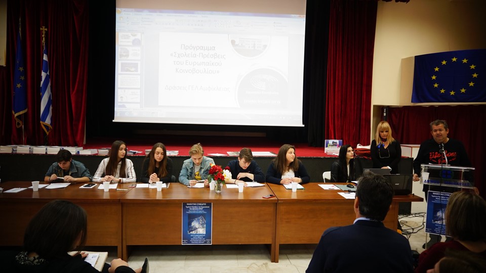 Ένα ακόμα ενδιαφέρον, επίκαιρο συνέδριο πέρασε με τον καλύτερο τρόπο στην ιστορία. Oι εργασίες του συνεδρίου πραγματοποιήθηκαν στο Πολιτιστικό Κέντρο του Δήμου Αμφίκλειας. Ήταν το 1ο ΜΑΘΗΤΙΚΟ ΣΥΝΕΔΡΙΟ για ¨Σχολεία Πρέσβεις του Ευρωπαϊκού Κοινοβουλίου EPAS και ξεχώρισε για την σύνθεσή του, για τον παλμό του και τα θετικά του συμπεράσματα. Ενδιαφέρουσα, δύσκολη και αξιέπαινη πρωτοβουλία ιδιαίτερα για τους οργανωτές οικοδεσπότες, το Λύκειο Αμφίκλειας το οποίο συμμετέχει στο θεσμό, με δεδομένες της δυσχέρειες ενός πρώτου παρόμοιου συνεδρίου. Όλα λειτούργησαν άψογα, υπήρξαν δε και χορηγοί οι οποίοι πρόθυμα στήριξαν και την απαραίτητη διοικητική μέριμνα του συνεδρίου (τροφοδοσία). Οι καλά, όπως φάνηκε, διαβασμένοι μαθητές – σύνεδροι ανέλυσαν τις μέχρι τώρα εργασίες τους πάνω στο θέμα και εστίασαν ιδιαίτερα στην σπουδαιότητα – αναγκαιότητα, εξάλειψης όσο δυνατόν περισσότερο της αποχής από τις Ευρωεκλογές ώστε να μην αφήνουμε τους άλλους τελικά να αποφασίζουν για λογαριασμό μας.
