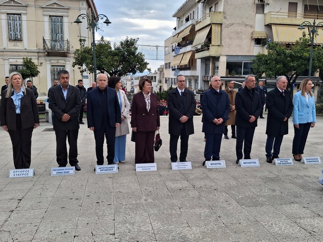Εκπρόσωπος της Κυβέρνησης ήταν η Γενική Γραμματέας Ενωσιακών Πόρων & Υποδομών του Υπουργείου Αγροτικής Ανάπτυξης και Τροφίμων, Αργυρώ Ζέρβα, ενώ εκπρόσωπος της Βουλής των Ελλήνων, ήταν ο Βουλευτής Φθιώτιδας της ΝΔ, Γιώργος Κοτρωνιάς. Το "παρών" επίσης έδωσαν οι βουλευτές Φθιώτιδας της ΝΔ, Χρήστος Σταϊκούρας και Γιάννης Οικονόμου, ο Αντιπεριφερειάρχης Φθιώτιδας, Ηλίας Σανίδας, ο Δήμαρχος Λαμιέων, Πανουργιάς Παπαϊωάννου και πολλοί Αντιδήμαρχοι και Δημοτικοί Σύμβουλοι, η Περιφερειακή Διευθύντρια Εκπαίδευσης Στερεάς Ελλάδας, Ελένη Μπενιάτα, ο Διεθυντής της Δευτεροβάθμιας Εκπαίδευσης Φθιώτιδας, Κωνσταντίνος Σπαλιώρας και αξιωματικοί των Ενόπλων Δυνάμεων και των Σωμάτων Ασφαλείας.