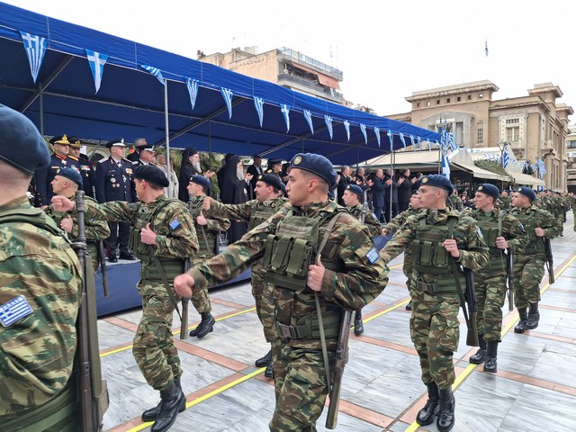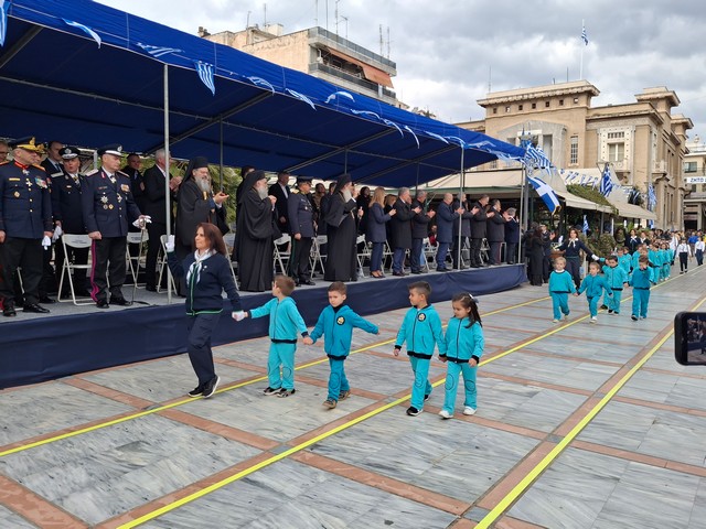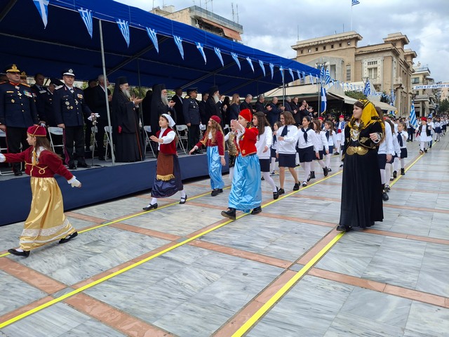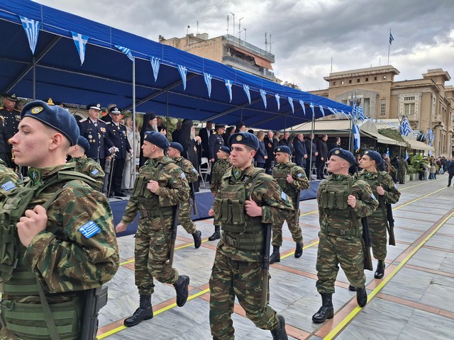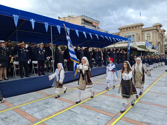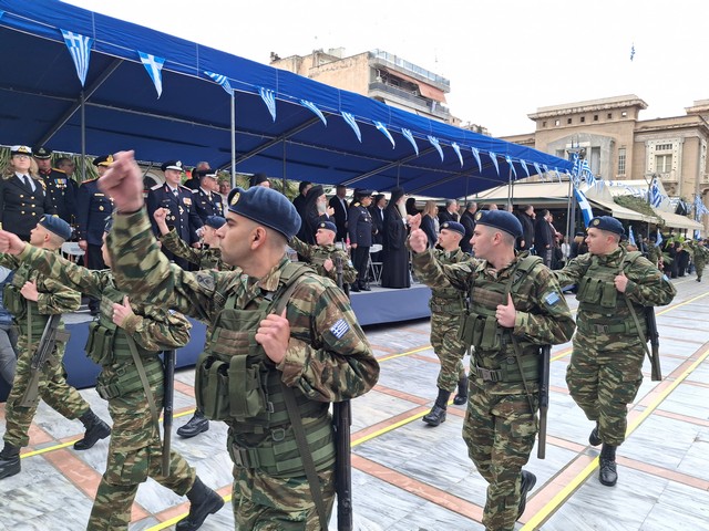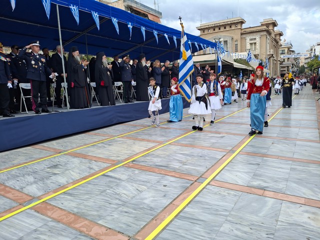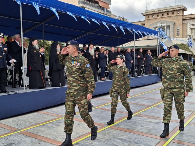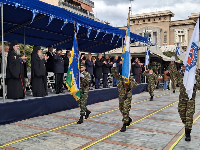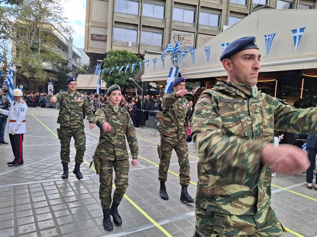 Ακολούθησε η στρατιωτική, μαθητική και πολιτική παρέλαση, μέσα σε κλίμα υπερηφάνειας, με τους συμμετέχοντες να δίνουν τον καλύτερό τους εαυτό για να τιμήσουν την πολύ σημαντική αυτή μέρα του Έθνους μας και τον κόσμο που κατέκλυσε το κέντρο, να τους χειροκροτεί και να τους επευφημεί.