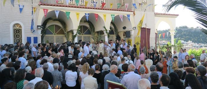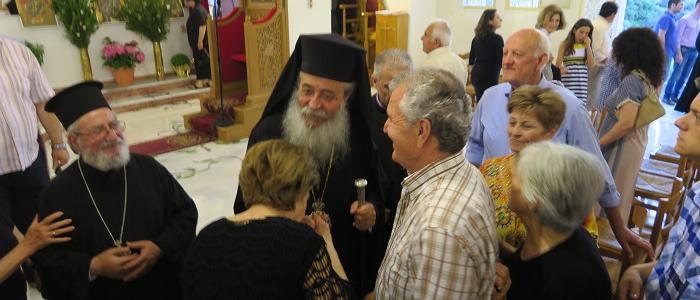 Ο Εφημέριος του Ιερού Ναού π. Χρήστος Τσιλοφύτης στην προσφώνησή του ευχαρίστησε όλους εκείνους που στάθηκαν στο πλευρό της Ενορίας ώστε να τελειώσει ο Ναός και ιδιαίτερα τον Σεβασμιώτατο ο οποίος όλα αυτά τα χρόνια αγωνιούσε να περατωθεί ο Ναός. Σε ανάμνηση δε των εγκαινίων προσέφερε στον Μητροπολίτη ένα Αρχιερατικό Εγκόλπιο, του κλήρου και του λαού αναφωνώντας Αξιος!