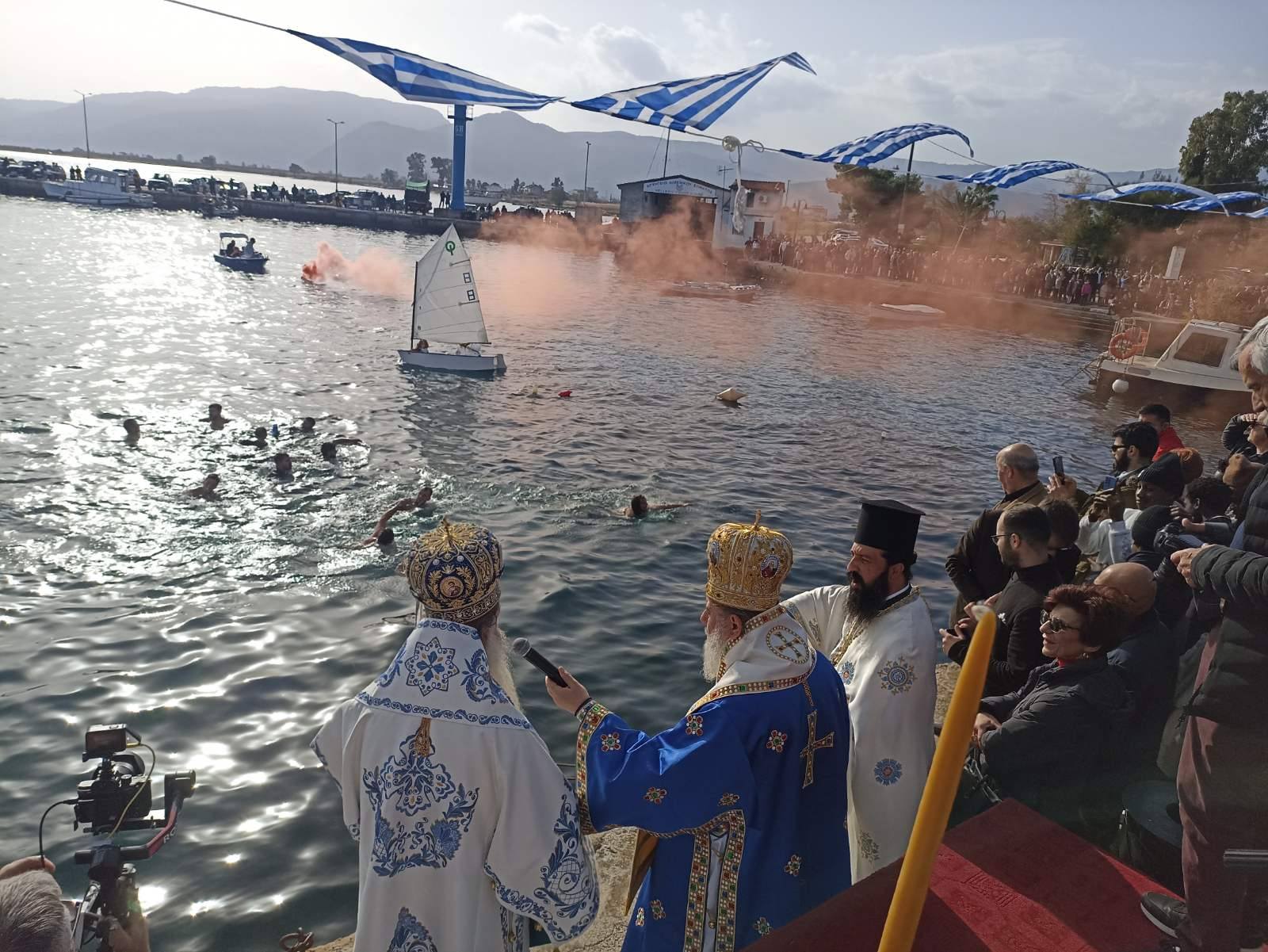 Οι θαρραλέοι κολυμβητές που βούτηξαν στα παγωμένα νερά των λιμένων της Σκάλας Αταλάντης και της Αρκίτσας για να πιάσουν τον τίμιο Σταυρό τιμήθηκαν από τους Αρχιερείς και τον Ιερό Κλήρο.