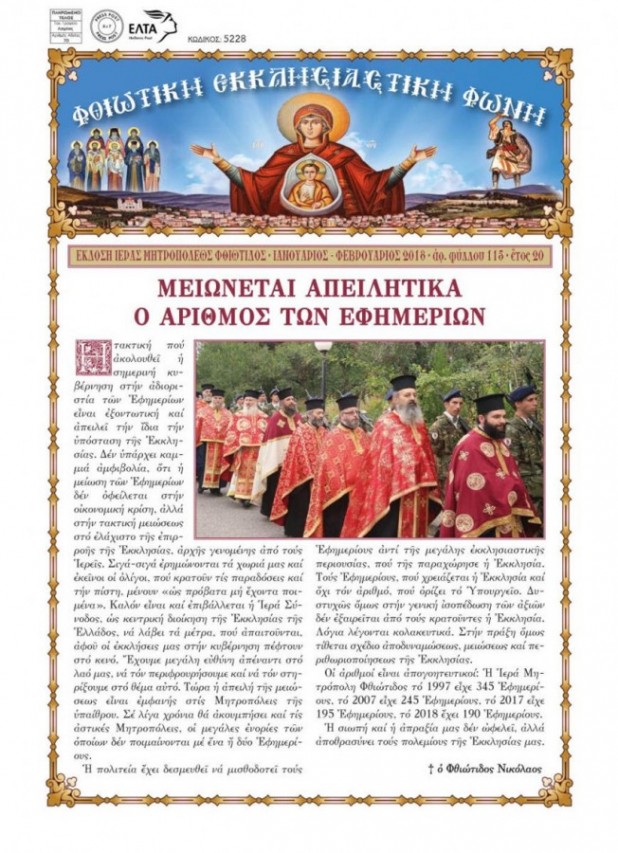 Kυκλοφόρησε το τεύχος Ιανουαρίου – Φεβρουαρίου της Εφημερίδος της Ιεράς Μητροπόλεως μας, «Φθιωτική Εκκλησιαστική Φωνή».