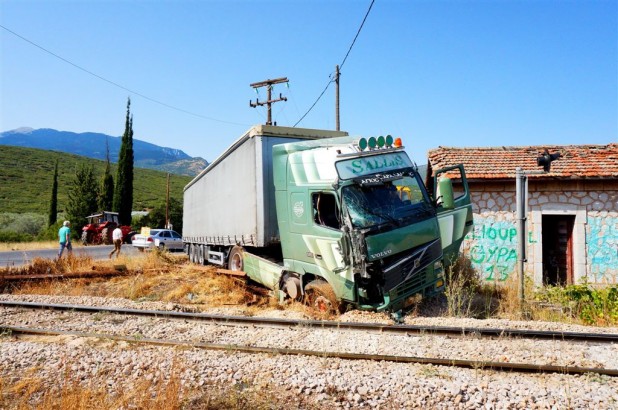 Νταλίκα συγκρούστηκε με τρένο στην Αμφίκλεια