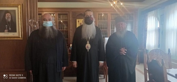Σημείωση: Ο π. Θεόκλητος, όπως διακρίνεται και στις σχετικές φωτογραφίες, έχει νόμιμη απαλλαγή, για λόγους υγείας, από την χρήση προστατευτικής μάσκας .