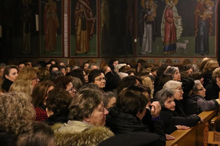Στον Εσπερινό παρέστησαν οι Ιερείς και οι διάκονοι της πόλης, ενώ συγκινητική υπήρξε η προσέλευση των πιστών, οι οποίοι από νωρίς είχαν κατακλύσει τον Μητροπολιτικό Ναό.
