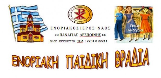 Μια όμορφη παιδική βραδιά διοργανώνει τη Δευτέρα 14 Ιουλίου ο Ενοριακός Ιερός Ναός της Παναγίας Δέσποινας.