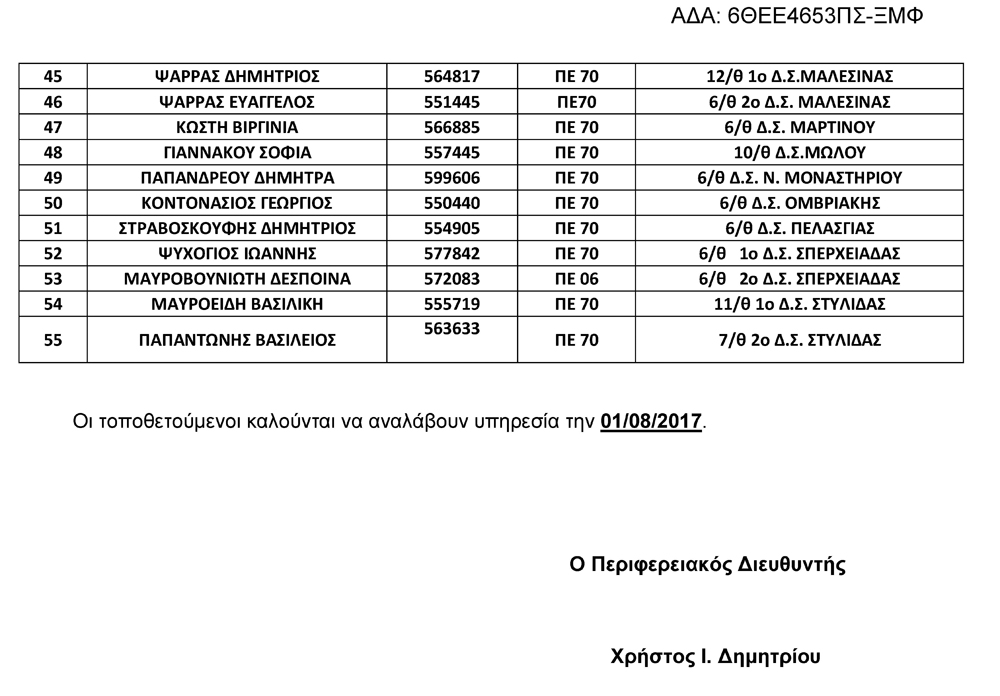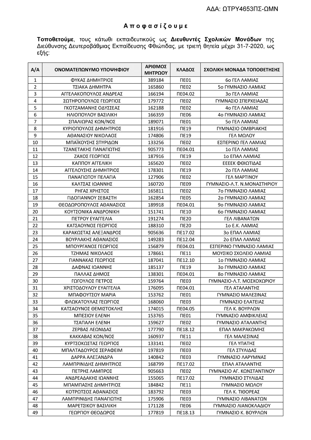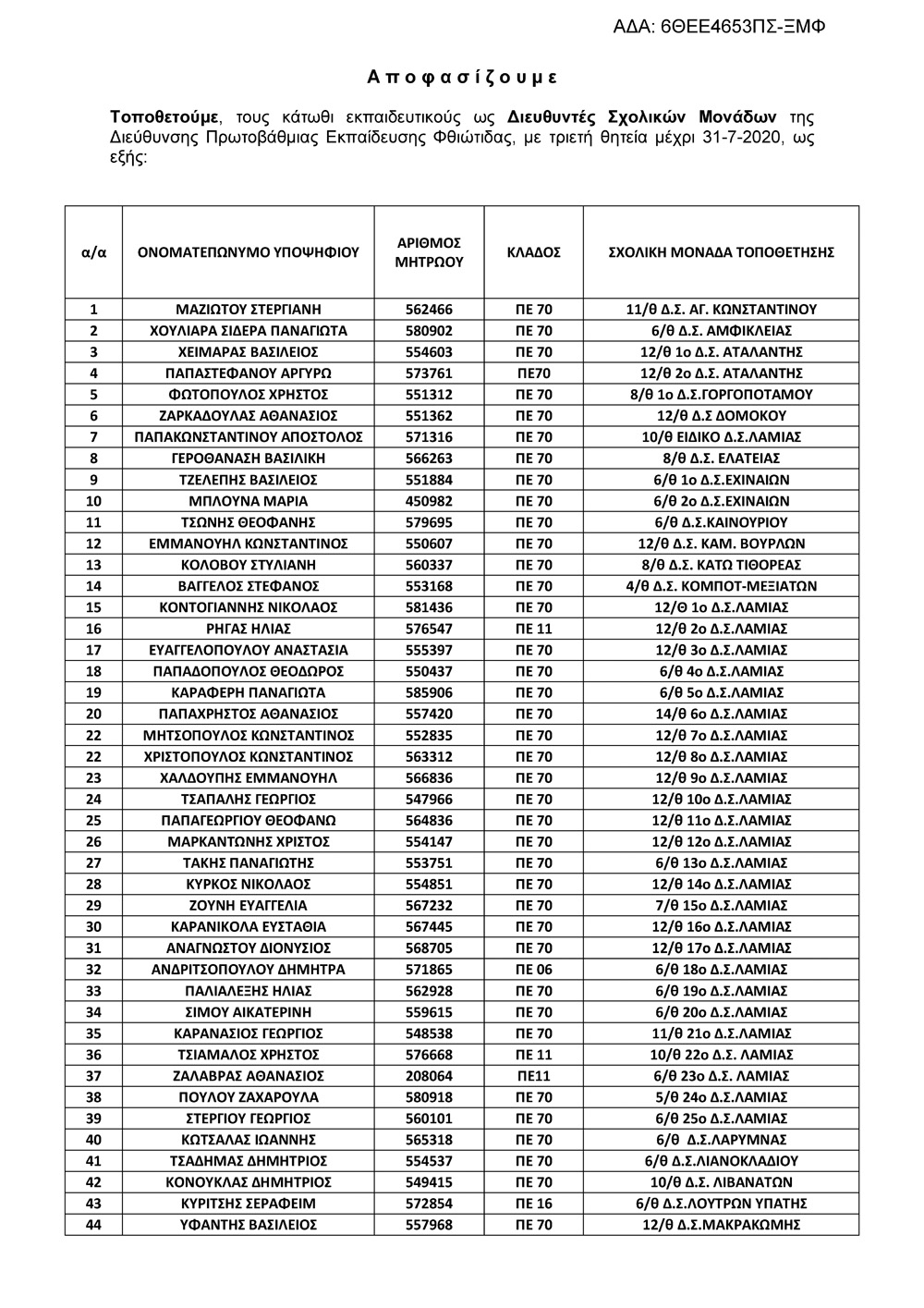 Οι Νέοι Διευθυντές σε Δημοτικά, Γυμνάσια και Λύκεια της Φθιώτιδας