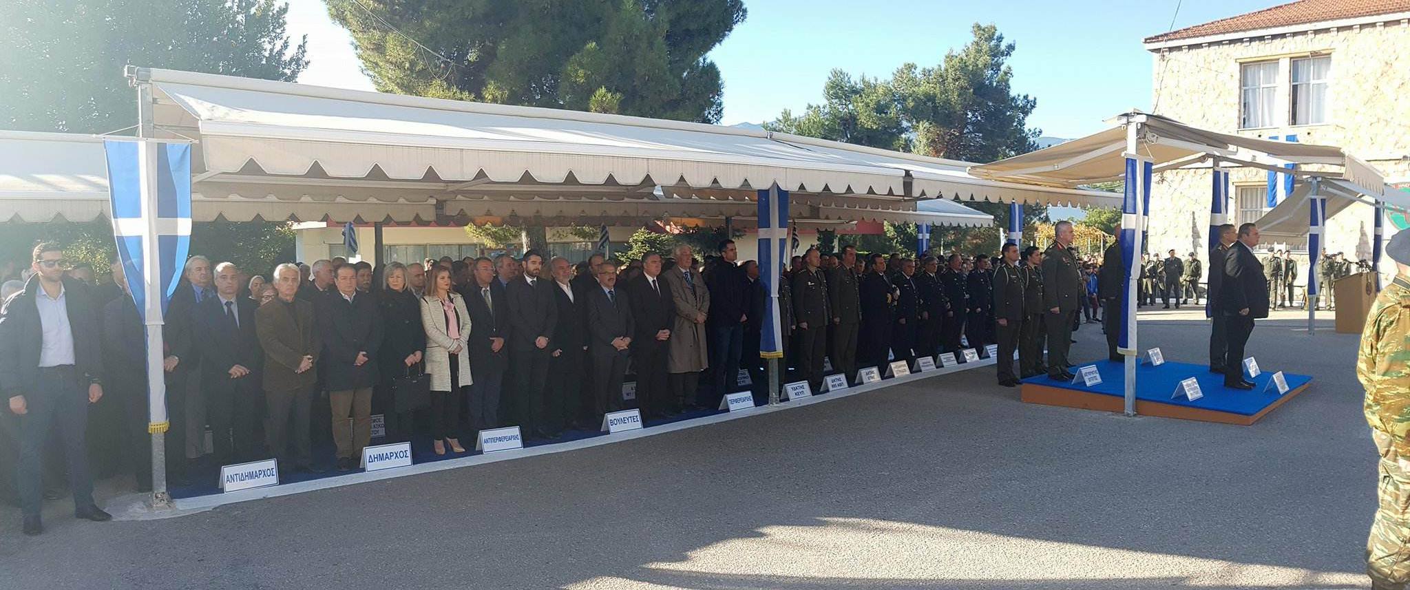 Ο υπουργός Εθνικής Αμυνας Πάνος Καμένος απευθυνόμενος στους νεοσυλλέκτους , τόνισε στην ομιλία του οτι ''το Σώμα Υλικού Πολέμου διαδραματίζει σημαντικό ρόλο στη βασική στρατιωτική εκπαίδευση σε συνδυασμό με τη σωστή διαχείριση της δημόσιας περιουσίας . Απο σήμερα μαζί με τα στελέχη των ενόπλων δυνάμεων , τόνισε , καλείστε να συνεχίσετε το δημιουργικό και ειρηνικό εργο του στρατού Ξηράς ανταποκρινόμενοι στις προσδοκίες του ελληνικού λαού . Η ευθύνη είναι μεγάλη και οι ελληνες πολίτες αναγνωρίζουν αυτή την ευθύνη και αυτή την προσφορά και γι'αυτό περιβάλλουν με υψιστο βαθμό εμπιστοσύνης τον θεσμό των ενόπλων δυνάμεων . Οι ενοπλες δυνάμεις είναι εγγυητής της ασφάλειας , της σταθερότητας και της ειρήνης . Αναγνωρίζουν ομως και το κοινωνικό μας εργο σε τομείς οπως η ασφάλεια και η προστασία των πολιτών σε εκτακτες ανάγκες ''. Κλείνοντας την ομιλία του ο υπουργός απευθυνόμενος στους γονείς των νεοσυλλέκτων λέγοντας οτι τιμούμε ολους εσας που δίνετε καθημερινό αγώνα μέσα σε δύσκολες συνθήκες για την σωστή ανατροφή του παιδιού . ''Η νέα γενιά αποτελεί την ελπίδα για ενα καλύτερο μέλλον'' τόνισε ο κ. Καμένος και πρόσθεσε οτι ''η παρουσία σήμερα στην ορκωμοσία των νεοσυλλέκτων του Μητροπολίτη Φθιώτιδας , ολων των βουλευτών , του Περιφερειάρχη , του Δημάρχου Λαμιέων και ολων των αρχών του τόπου αποτελεί ενα μήνυμα αισιοδοξίας και ενότητας και στήριξης των ενόπλων δυνάμεων του τόπου'' . Το 2018 , είπε ο υπουργός , θα είναι μια χρονιά που θα ξαναφέρει το χαμόγελο στην πατρίδα μας ''