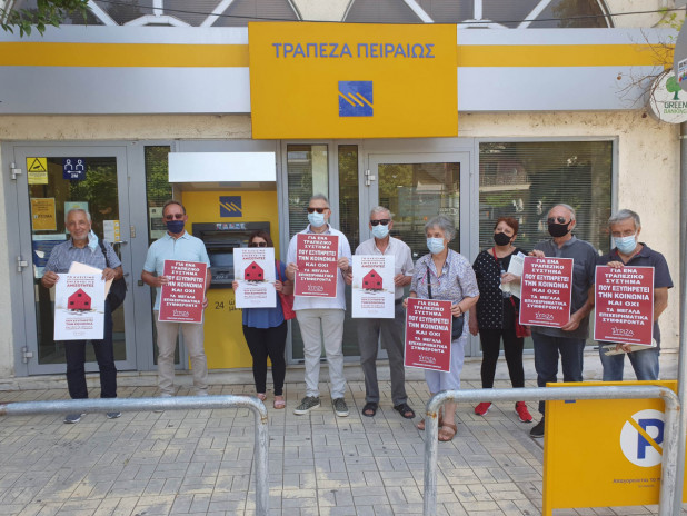 Μια συμβολική και ουσιαστική παρέμβαση πραγματοποίησε την Πέμπτη (22/7) στις 12:00μ. η Νομαρχιακή Επιτροπή Φθιώτιδας και η Οργάνωση Μελών της Στυλίδας κατά της απόφασης της τράπεζας Πειραιώς για το κλείσιμο του καταστήματος της στη Στυλίδα.