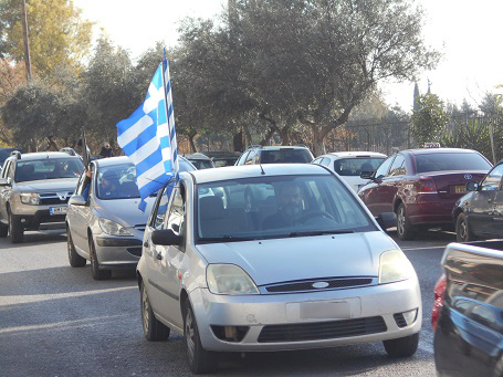 Η αυτοκινητοπομπή ξεκίνησε από την Αγία Παρασκευή με τους κατοίκους που διαμαρτύρονται να ζητούν από το Δήμαρχο να πάρει πίσω την απόφαση του Δημοτικού συμβουλίου που ανοίγει το δρόμο, όπως πιστεύουν, στην εγκατάσταση προσφύγων στην περιοχή τους.