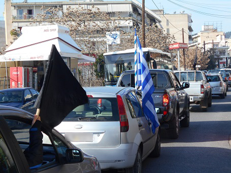 Δεκάδες αυτοκίνητα με μαύρες σημαίες πραγματοποίησαν πορεία διαμαρτυρίας ενάντια στις αποφάσεις της κυβέρνησης για τη δημιουργία hot spot στην περιοχή της Μαυρομαντήλας.