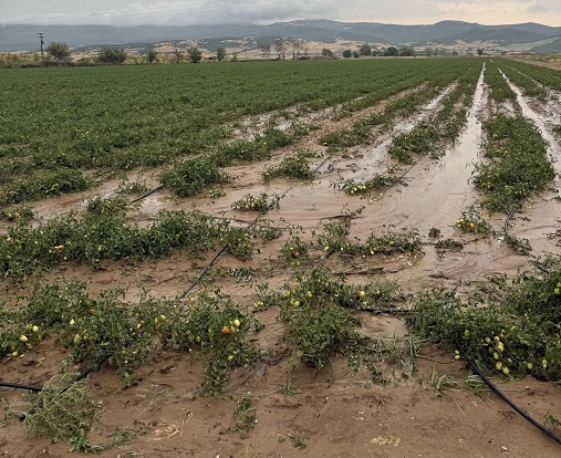 Μεγάλες οι ζημιές και στην ντομάτα και στα κηπευτικά καρπούζια.