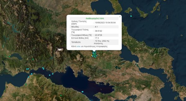 Το επίκεντρο της δόνησης εντοπίζεται 12 χλμ. δυτικά νοτιοδυτικά της Αταλάντης.