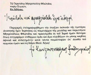 Συγχαρητήρια επιστολή απέστειλε στο νέο Μητροπολίτη Φθιώτιδας κ. Συμεών, ο Παναγιώτατος Οικουμενικός Πατριάρχης Βαρθολομαίος. (δείτε την επιστολή παρακάτω).