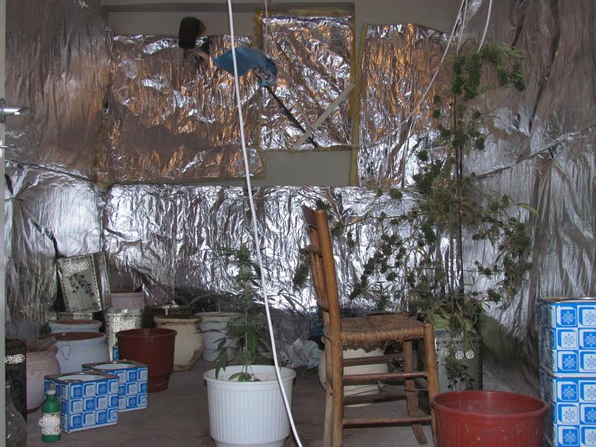 Κατά τη διάρκεια της έρευνας, σε ειδικά διαμορφωμένο χώρο στο υπόγειο της οικίας (με πλήρη θερμομόνωση στα τοιχώματα και εξαερισμό), καθώς και σε υπαίθριο χώρο παρακείμενης εγκαταλελειμμένης οικίας, εντοπίσθηκαν συνολικά και κατασχέθηκαν: