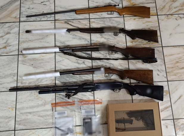 Επιπλέον, κατά την έρευνα στην προαναφερόμενη οικία, βρέθηκαν και κατασχέθηκαν συνολικά πέντε κυνηγετικά όπλα, εκ των οποίων το ένα ήταν κλεμμένο, καθώς, όπως προέκυψε, είχε αφαιρεθεί απογευματινές ώρες της 30-03-2025, μετά από παραβίαση οικίας περιοχής της Λαμίας.