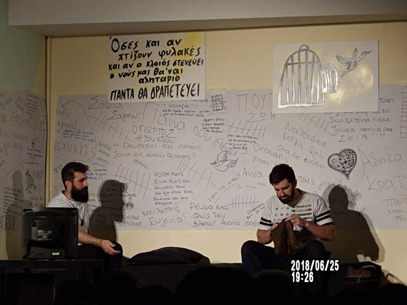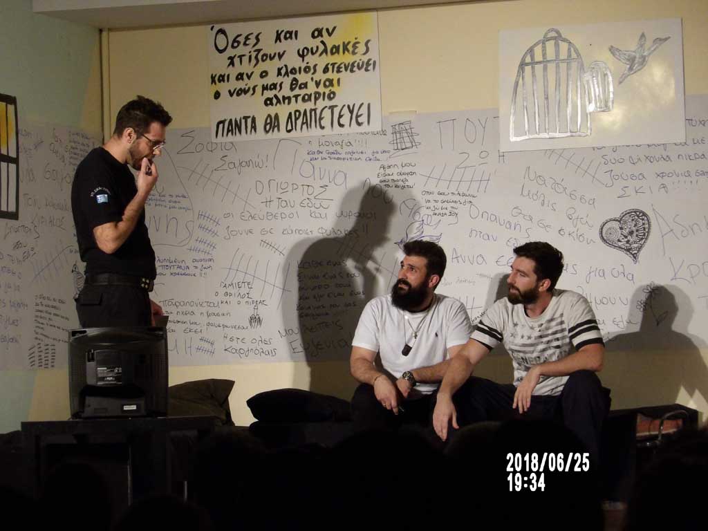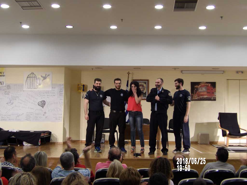 Για πρώτη φορά, οι υπάλληλοι του σωφρονιστικού ιδρύματος ανέβηκαν στην σκηνή σε έναν διάλογο ψυχής με το κοινό, όπου μοιράστηκαν συναισθήματα και στιγμές από τη ζωή τους. Δεν έλειψε το χιούμορ, η σάτιρα αλλά και η συγκίνηση όταν στο φινάλε ξύπνησαν μνήμες από τον τραγικό χαμό του δεσμοφύλακα Μάκη Γκαλιμάνη. Το πρωί της ίδιας μέρας, προηγήθηκε η παρουσίαση της θεατρικής προσπάθειας των κρατουμένων, στο χώρο του ιδρύματος στο Δομοκό.