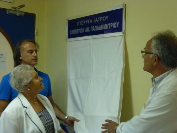 Το όνομα του γιατρού, Δημήτρη Παπαδημητρίου, φέρει και επίσημα πλέον πτέρυγα της Παθολογικής Κλινικής του νοσοκομείου Λαμίας μετά την τελετή ονοματοδοσίας που πραγματοποιήθηκε σήμερα το πρωί.
