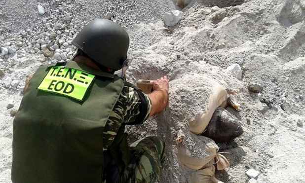 Η επιχείρηση εξουδετέρωσης της χειροβομβίδας εγινε απο τους πυροτεχνουργούς λαμβάνοντας όλα τα απαραίτητα μέτρα ασφαλείας.