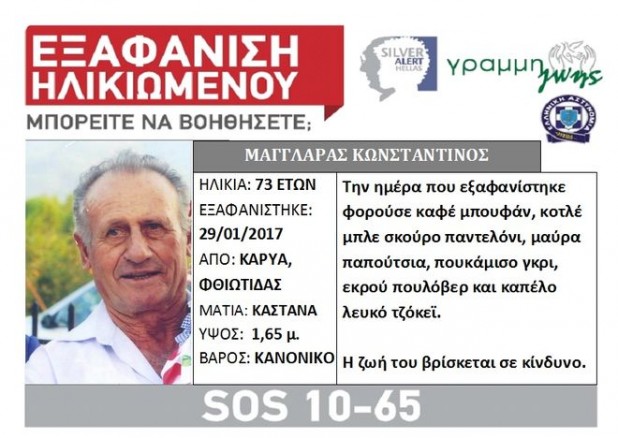 Στην περιοχή, από τα μέσα Ιανουαρίου, έχει εξαφανιστεί και αναζητείται ένας 73χρονος από την Καρυά Υπάτης, ωστόσο μέχρι αυτή τη στιγμή το πτώμα δεν εχει αναγνωριστεί και η Αστυνομία εξετάζει ολα τα ενδεχόμενα .