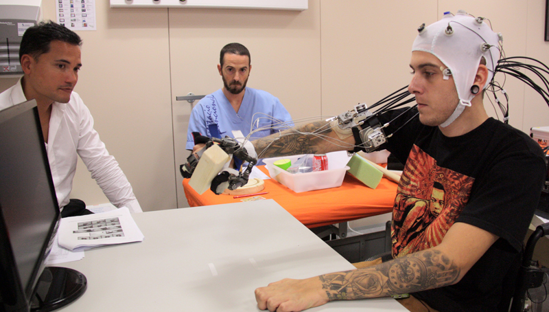 Ένας νευρο-ρομποτικός εξωσκελετός, που φοριέται στο χέρι και δημιουργήθηκε από Eυρωπαίους επιστήμονες, επέτρεψε για πρώτη φορά σε έξι τετραπληγικούς να πιάσουν και να χειρισθούν αντικείμενα όπως μαχαιροπίρουνα για να φάνε ή να υπογράψουν έγγραφα με στιλό. Οι παράλυτοι ασθενείς που έπασχαν από παραπληγία και έως τότε αδυνατούσαν να κάνουν οτιδήποτε χωρίς βοήθεια, κατάφεραν να λειτουργήσουν αυτόνομα χάρη στον εξωσκελετό, ο οποίος ελέγχεται από μια ηλεκτρονική κάσκα που φοριέται στο κεφάλι και φορτίζεται από την μπαταρία ενός υπολογιστή ταμπλέτας. Το σύστημα είναι αξιόπιστο και πρακτικό, χωρίς να προκαλεί δυσφορία κατά τη χρήση του.