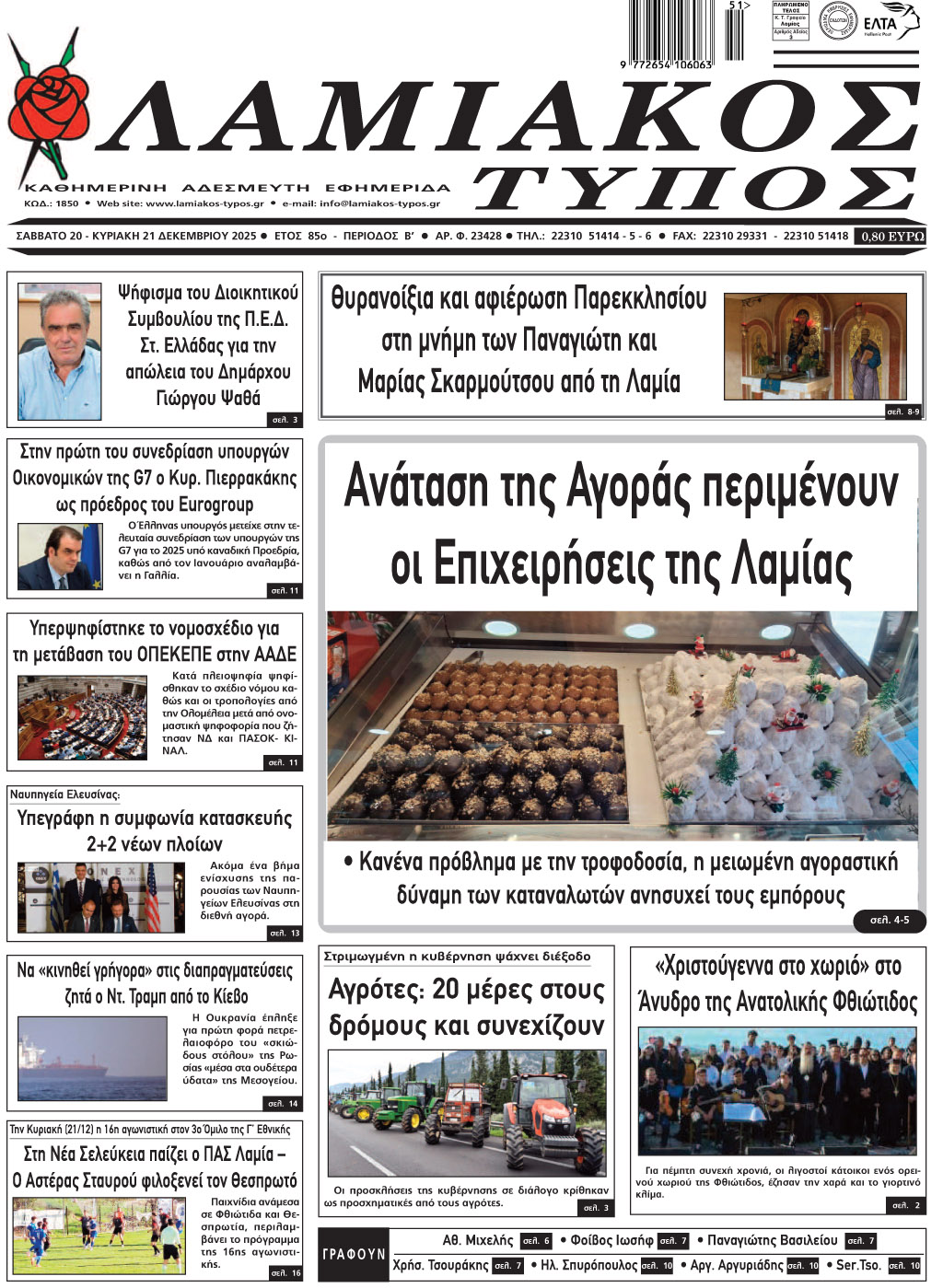Tαυτότητα lamiakos-typos.gr: ΙΔΙΟΚΤΗΣΙΑ “ΛΑΜΙΑΚΟΣ ΤΥΠΟΣ” Α.Ε., ΕΚΔΟΤΗΣ - ΝΟΜΙΜΟΣ ΕΚΠΡΟΣΩΠΟΣ - ΔΙΕΥΘΥΝΤΗΣ: ΣΠΥΡΙΔΩΝ ΑΛ. ΡΙΖΟΣ, ΔΙΕΥΘΥΝΤΗΣ ΣΥΝΤΑΞΗΣ: ΣΠΥΡΙΔΩΝ ΓΕΩ. ΣΤΕΦΑΝΗΣ, ΔΗΜΟΣΙΟΓΡΑΦΟΙ : Στεφανής Σπυρίδων - Ιωάννου Κωνσταντίνος, ΑΦΜ 094182000 – ΑΡ.Μ.Α.Ε.19091/14/Β/89/002 Δ.Ο.Υ. Λαμίας, Διεύθυνση: HPΩΩN 3, ΛAMIA - T.K. 351 00 THΛ.: 22310 51414 -17, 22310 21168, email: info@lamiakos-typos.gr, lamiakos@gmail.com | Δήλωση συμμόρφωσης