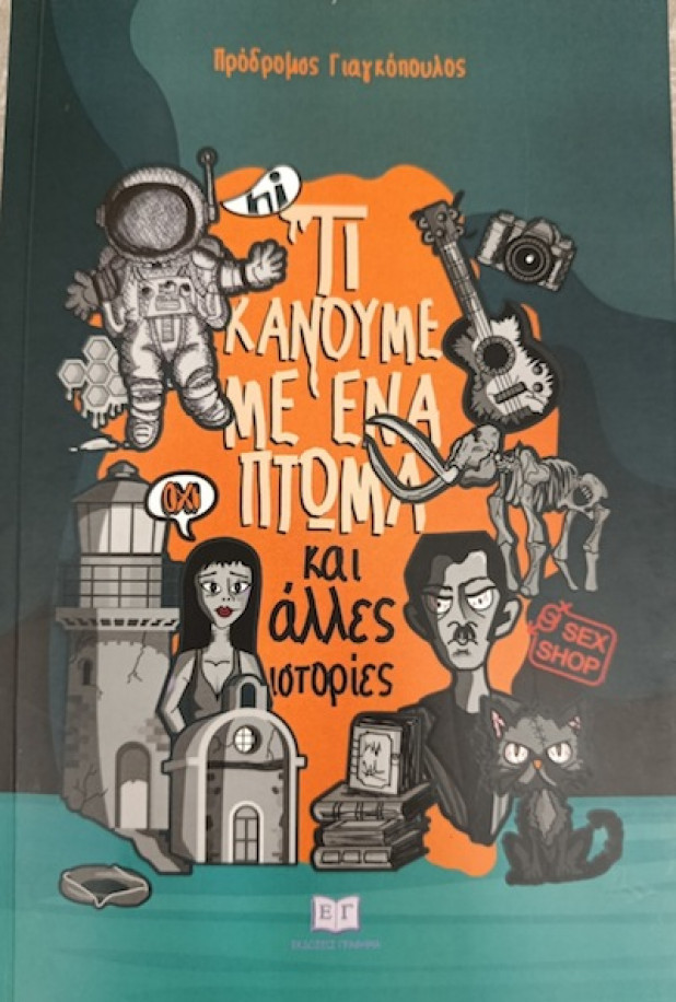 Στη συλλογή, Τι κάνουμε μ’ ένα πτώμα και άλλες ιστορίες τέσσερις ενότητες ξεδιπλώνουν τέσσερις διαφορετικές όψεις του κόσμου, όπως τον βλέπει ο Πρόδρομος Γιαγκόπουλος με λεπτή ειρωνεία, υπόγεια συγκίνηση και ρεαλιστικές αποχρώσεις. Οι ιστορίες κινούνται ανάμεσα στο γνώριμο και στο ελαφρός παράδοξο, στην αστική ρωγμή και στην στιγμιαία ανατροπή της καθημερινότητας.