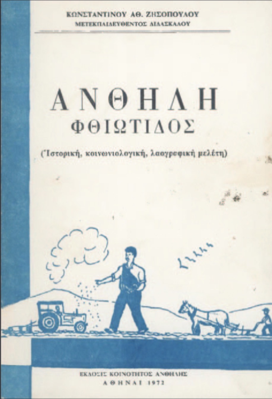 Ο εκπαιδευτικός κ. Κώστας Αθ. Ζησόπουλος, όπως είδαμε πιο πάνω, συνέγραψε και η Κοινότητα Ανθήλης εξέδωσε στα 1972 την αξιόλογη μελέτη για την Ανθήλη Φθιώτιδος, (σ.σ. μέλος της κριτικής Επιτροπής για έγκριση του βιβλίου ήταν και η ταπεινότητα μου μαζί με τον καλό μου φίλο, Γραμματέα της κοινότητας (τότε) κ. Θεόδωρον Μπονιάκον).