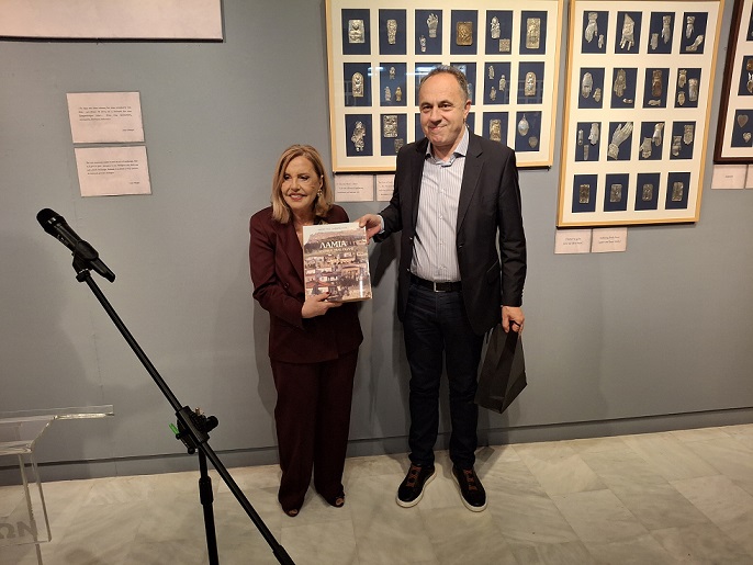 # Το βιβλίο του συμπολίτη μας και συνεργάτη της εφημερίδας Νίκου Δαβανέλλου «ΛΑΜΙΑ – Το χρονικό μιας πόλης», ταξιδεύει σε όλο τον κόσμο κάνοντας τους αναγνώστες να γνωρίσουν μέσα από τις σελίδες του και το πλούσιο φωτογραφικό υλικό την ιστορία της Λαμίας. Το βιβλίο αυτό δώρισε ο Δήμαρχος Πανουργιάς Παπαϊωάννου στη συλλέκτρια Λόλα Νταϊφά στα εγκαίνια της έκθεσης «ΤΑΜΑΤΑ, ελπίς ανυπόκριτος». Το ίδιο δώρο έκανε και στην πρόεδρο του Φορέα Γενικών Αρχείων Κράτους/Ιστορικού Αρχείου Μουσείου Ύδρας, Κωνσταντίνα Αδαμοπούλου.