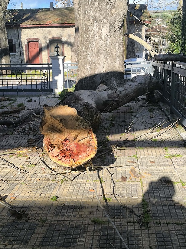 Ολόκληροι κορμοί δένδρων ξεριζώθηκαν εξαιτίας των ισχυρών ανέμων. Συγκεκριμένα πτώσεις δέντρων είχαμε στην περιοχή του Γοργοποτάμου, στο Φραντζή, στο Λιανοκλάδι, στην Βόρεια Λαμία, στον δρόμο για Δομοκό και στην παλιά Εθνική Οδό Λαμίας-Αθηνών.