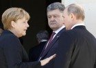 Οι πρόεδροι της Ρωσίας Βλαντίμιρ Πούτιν, της Ουκρανίας Πέτρο Ποροσένκο, της Γαλλίας Φρανσουά Ολάντ και η καγκελάριος της Γερμανίας Αγγελα Μέρκελ συναντώνται...
