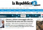 Πρώτο θέμα στην ηλεκτρονική έκδοση της εφημερίδας «Λα Ρεπούμπλικα» είναι σήμερα η επίσκεψη του Αμερικανού Προέδρου, Μπαράκ Ομπάμα, στην Αθήνα. Η ιταλική...