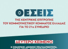 Η ΚΕ του ΚΚΕ δημοσιεύει σήμερα το δεύτερο κείμενο των Θέσεων για το 21ο Συνέδριο του Κόμματος το οποίο θα διεξαχθεί μέσα στο 2021 με σύνθημα: «Δυνατό ΚΚΕ. Νους...