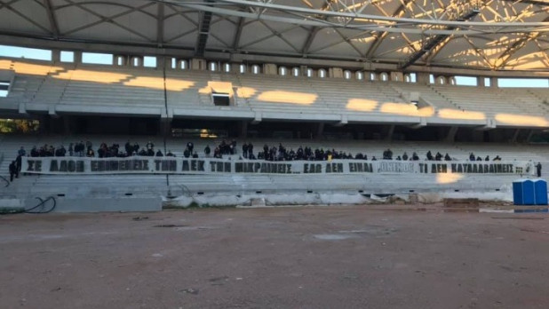 Πριν το παιχνίδι με τον Παναιτωλικό οργανωμένοι μπήκαν στην «Αγία Σοφιά» και κρέμασαν ένα πανό.
