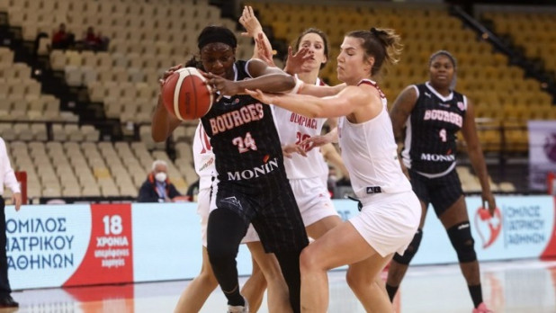 Απομακρύνεται η πρόκριση του Ολυμπιακού στα προημιτελικά του EuroCup γυναικών, μετά την ήττα του στο ΣΕΦ. Οι «ερυθρόλευκες» έχασαν 60-73 από την Μπουρζ, στην πρώτη μεταξύ τους αναμέτρηση για τον «Γύρο των "8"», και πλέον καλούνται στον αγώνα ρεβάνς (2/3) επί γαλλικού εδάφους να ανατρέψουν την εις βάρος τους διαφορά και να πάρουν το «εισιτήριο» για την επόμενη φάση.