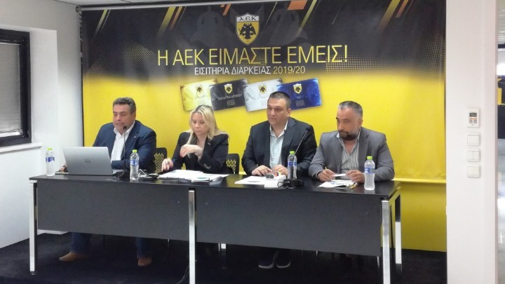 Με σύνθημα "Η ΑΕΚ είμαστε εμείς" παρουσιάστηκαν τα εισιτήρια διαρκείας της "κιτρινόμαυρης" ΠΑΕ για την αγωνιστική περίοδο 2019/2020. Το σημαντικότερο στοιχείο της παρουσίασης, είναι ότι δεν υπάρχουν αυξήσεις στις τιμές παρά το γεγονός ότι στο πακέτο περιλαμβάνονται περισσότερα ντέρμπι, λόγω των play off που θα διεξαχθούν στο τέλος της σεζόν. Από την άλλη πλευρά βέβαια δεν περιλαμβάνονται -προς το παρόν- και Ευρωπαϊκά ματς καθώς η ΑΕΚ θα παίξει κεκλεισμένων των θυρών τους προκριματικούς της αγώνες στο Εuropa league. Εάν όμως προκριθεί στους ομίλους, τότε το πακέτο γίνεται ιδιαίτερα ελκυστικό, με περισσότερους αγώνες και την ίδια τιμολογιακή πολιτική.