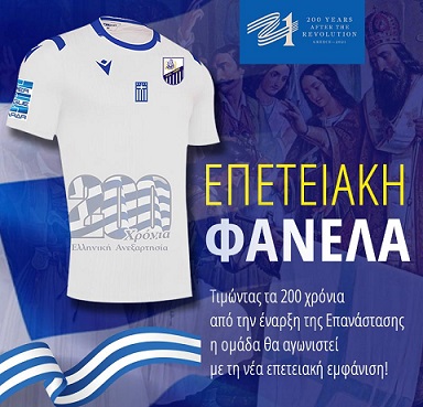 Η φανέλα που θα φορεθεί είναι η λευκή με τυπωμένο το “200 χρόνια Ελληνική Ανεξαρτησία” με φόντο τα χρώματα της Ελληνικής σημαίας!