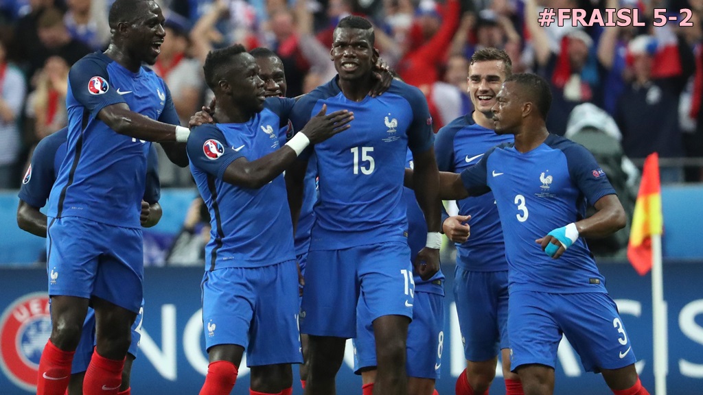 Το όνειρο της Ισλανδίας... γκρεμίστηκε νωρίς. Η Γαλλία ήταν εντυπωσιακή στα προημιτελικά του EURO 2016 και επιβλήθηκε με 5-2, παίρνοντας πανηγυρικά την πρόκριση στα ημιτελικά της διοργάνωσης. Δύο γκολ σημείωσε ο Ζιρού (12', 59') κι από ένα οι Πογκμπά (20'), Παγέτ (43') και Γκριζμάν (45') για τους «τρικολόρ» που συνεχίζουν ακάθεκτοι την πορεία τους προς τον τελικό. Επόμενος αντίπαλος η Γερμανία με την ομάδα του Ντεσάμπ να έχει πολύ πιο δύσκολο έργο. Από την άλλη η Ισλανδία παρά τη βαριά ήττα, αποχώρησε από τη διοργάνωση με ψηλά το κεφάλι, όντας η ευχάριστη έκπληξη του Euro. Τα γκολ της τιμής σημείωσαν ο Σίγκτορσον στο 56' και ο Μπιάρνασον στο 85'.